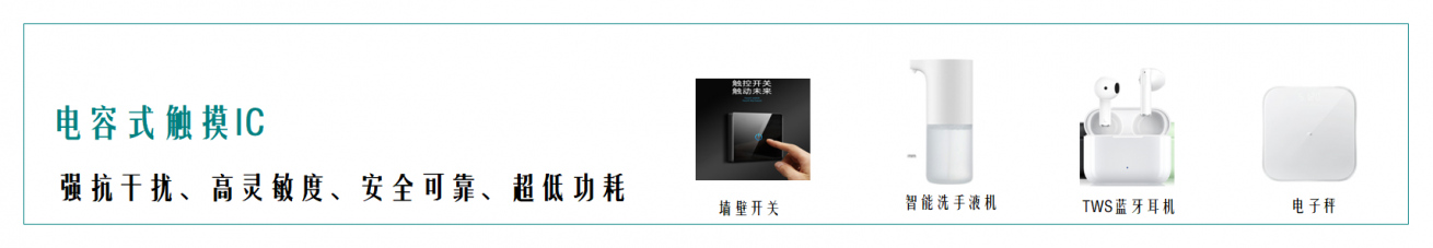 CT8336 | 單鍵系列 | 2.4V~5.5V | DFN1*1-4L /DFN2*2-6L/SOT23-6L | 單通道電容式觸摸檢測 IC | 廣泛應(yīng)用于 TWS,益智玩具,燈光控制等 DC 類消費(fèi)電子產(chǎn)品上。 | - | - | - | - | - | - | - | - | - | - | - | - | - | - | - | - | - | - | - | - | - | - | 下載 |