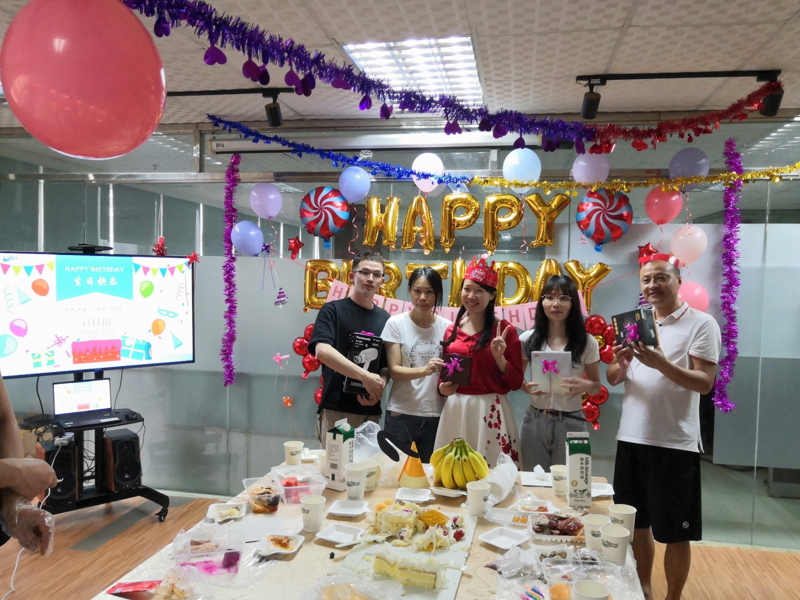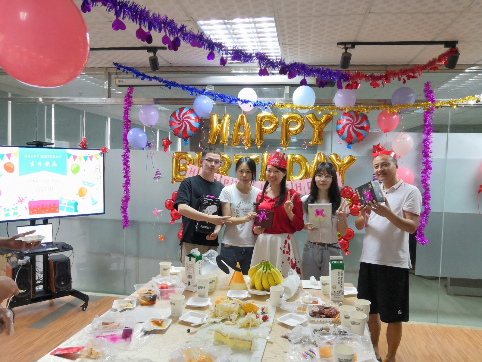 In order to make this event more exciting, the company's colleagues colleagues carefully arrange the event site, and prepared birthday gifts, cakes, fruits, snacks, etc., so that this birthday will be surprised.