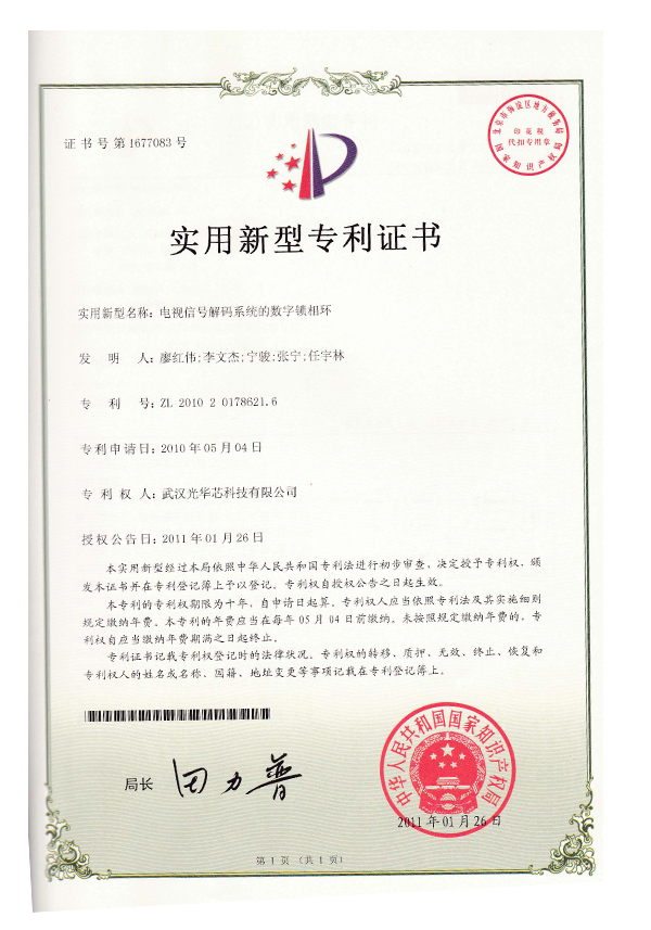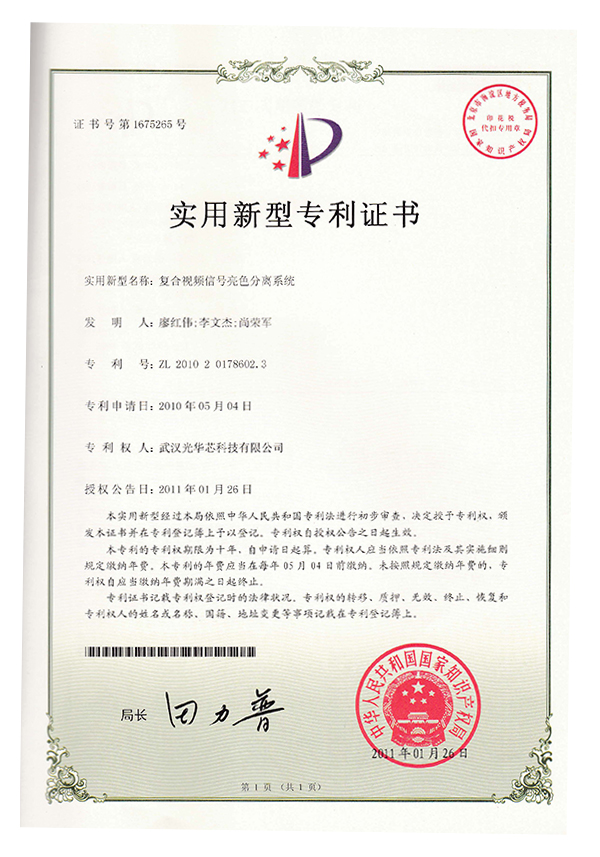 實(shí)用新型專利證書