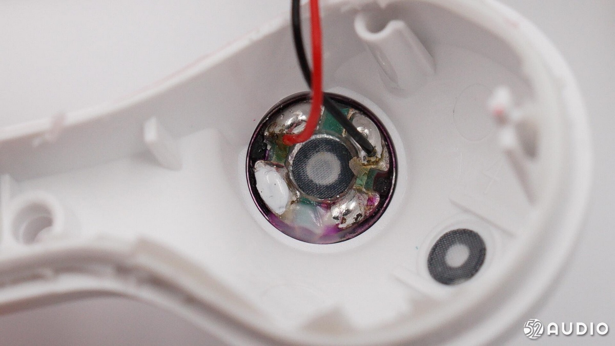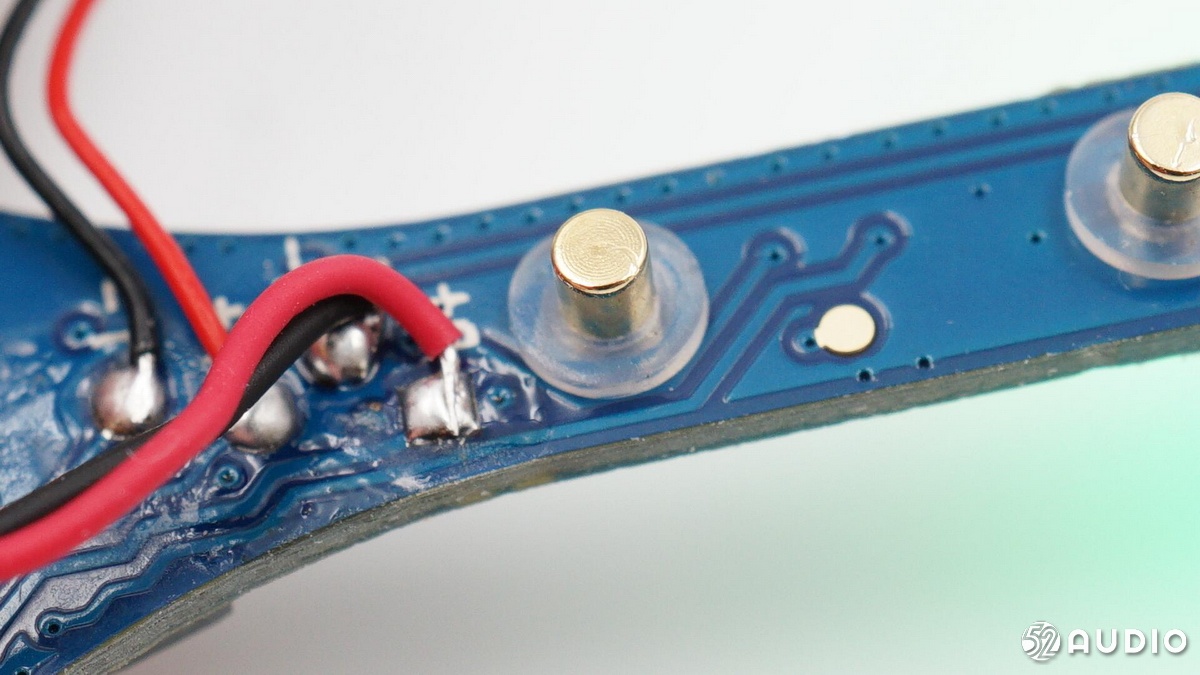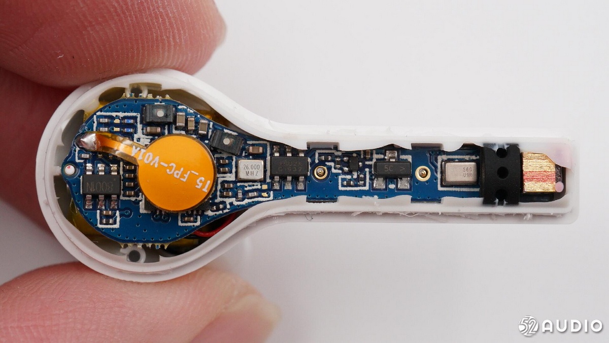 耳機(jī)內(nèi)部電路一覽,電池和揚(yáng)聲器通過導(dǎo)線連接至主板。