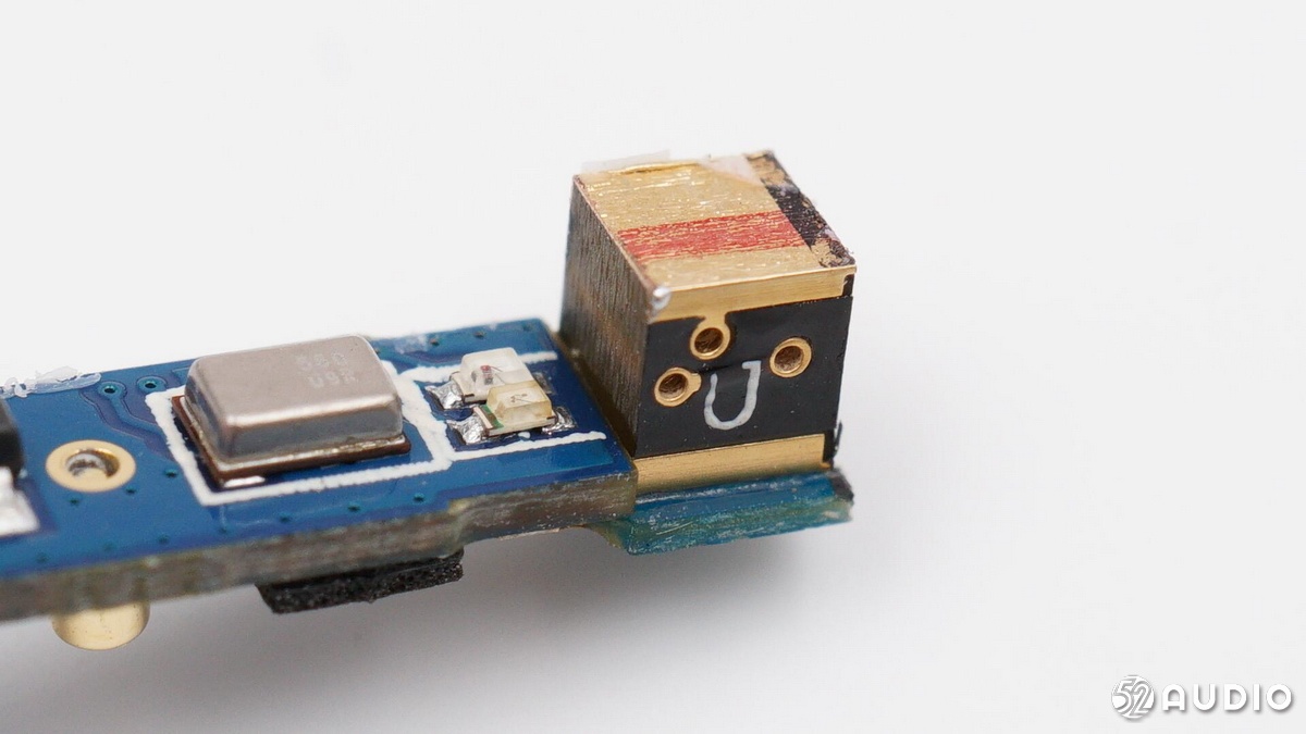 主板背面從左至右依次是藍(lán)牙天線、麥克風(fēng)拾音孔的保護(hù)罩、充電銅柱和導(dǎo)線的焊點(diǎn)。