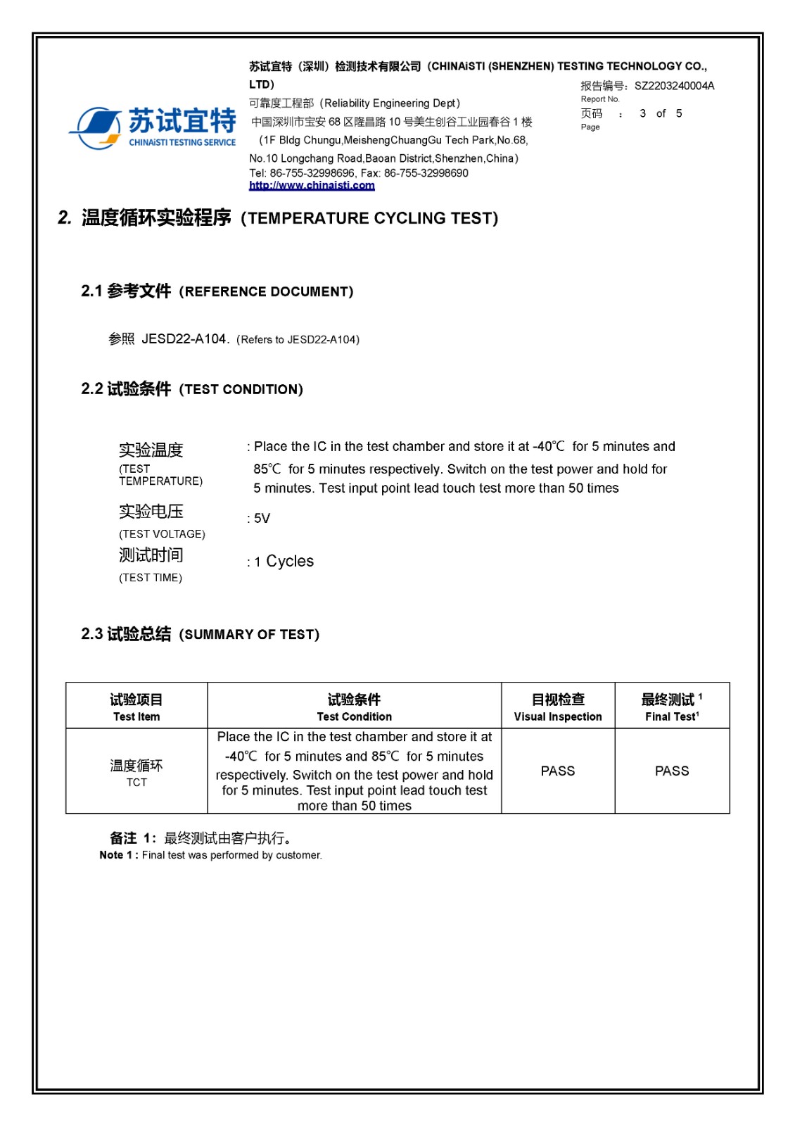 CT8333-QK SOT23-6_溫度循環(huán)試驗報告