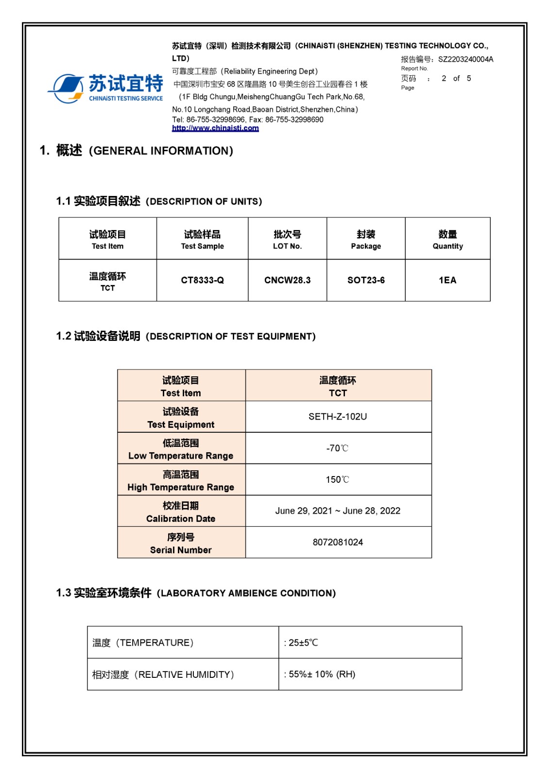 CT8333-Q SOT23-6(極限測(cè)試)_溫度循環(huán)試驗(yàn)報(bào)告