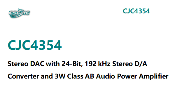 The CJC4354 is a high-quality stereo DAC designed for portable multimedia applications and a mono bridged audio power amplifier capable of delivering 3W of continuous average power int...